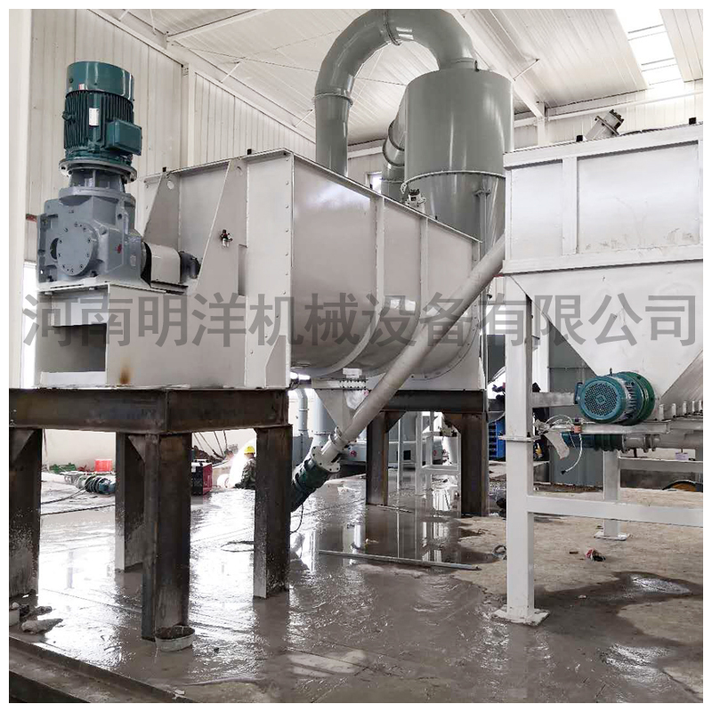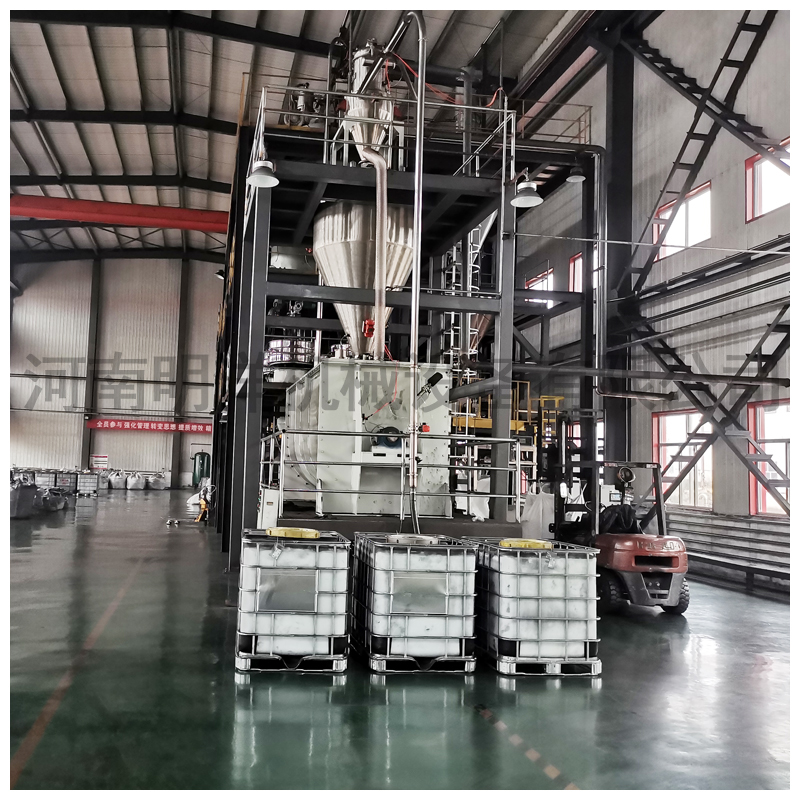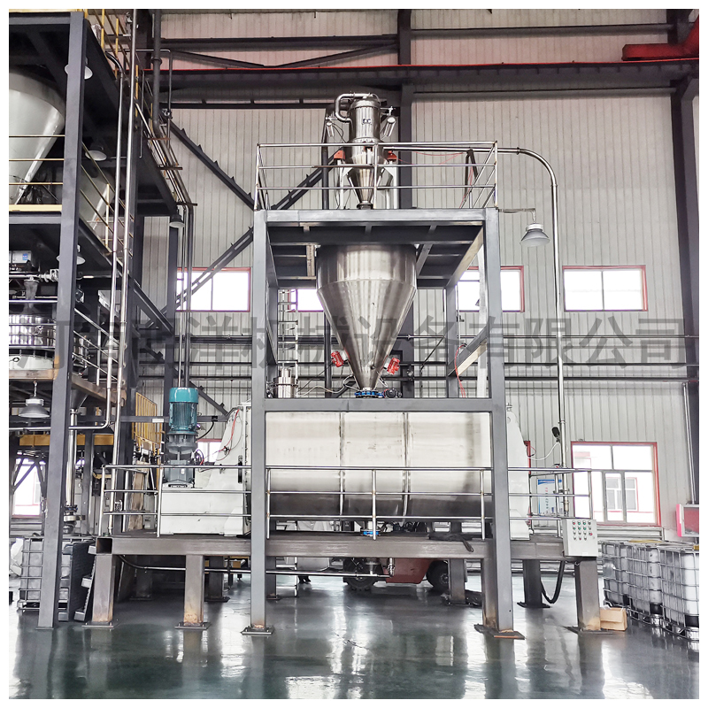 上料氣力輸送系統(tǒng)、關(guān)風(fēng)機、緩存料倉、臥式螺帶混合機、出料氣力輸送系統(tǒng)、成品料倉、螺旋輸送機、分配器、超聲波振動篩、除塵系統(tǒng)等。